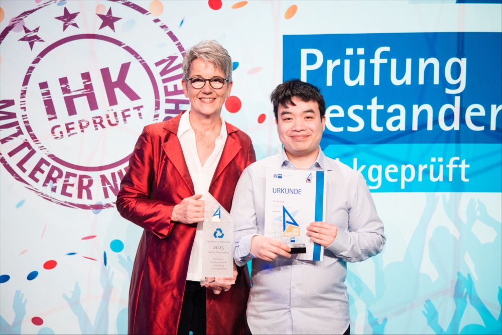 Und selbstverständlich kommt es in erster Linie auf unsere Auszubildenden an. In diesem Jahr war es neben anderen sehr guten Ergebnissen das herausragende Ergebnis eines Absolventen: Viet Phu Quan erreichte in seiner Abschlussprüfung als Verkäufer 99 Prozent der möglichen Punkte.“